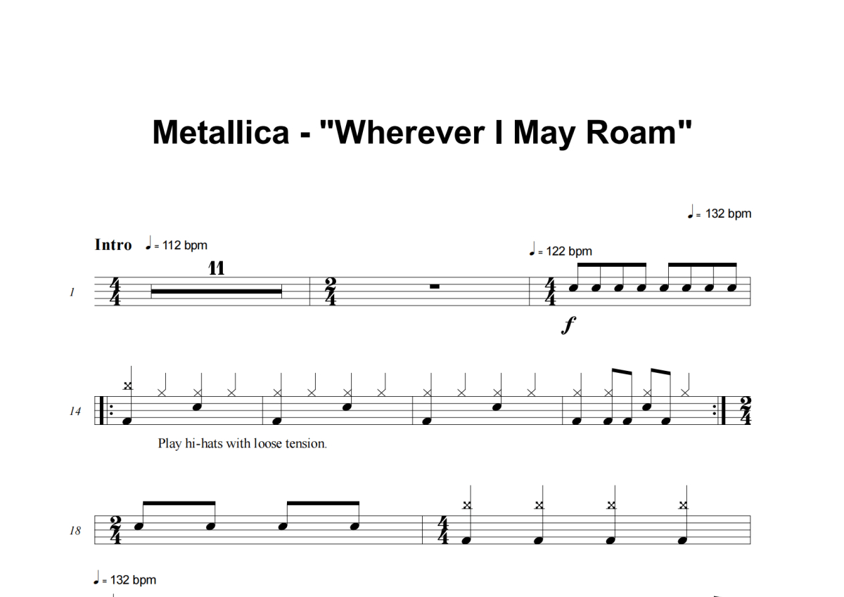 Metallica《Wherever I May Roam》架子鼓谱