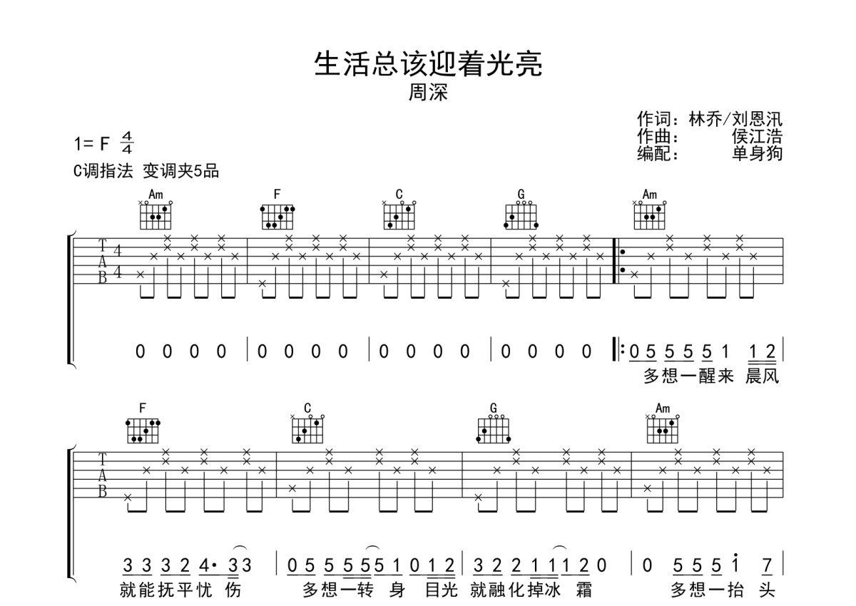 周深《生活总该迎着光亮》吉他谱 - C调弹唱六线谱