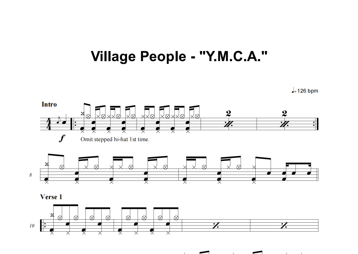 Y.M.C.A.架子鼓谱 - Village People演唱