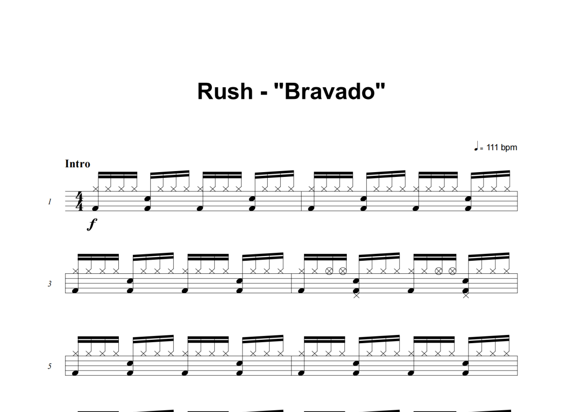 《Bravado》是Rush演唱的一首歌曲,这份架子鼓谱共有七张高清图谱,图谱由 @庄颜 编配上传,图谱使用五线谱编配,使用这份Bravado架子鼓谱,你将能够轻松地敲打出这首Rush的Bravado,快来尝试吧。