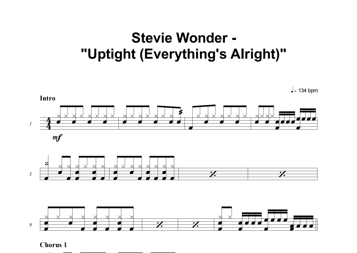 Stevie Wonder《Uptight (Everything's Alright)》架子鼓谱