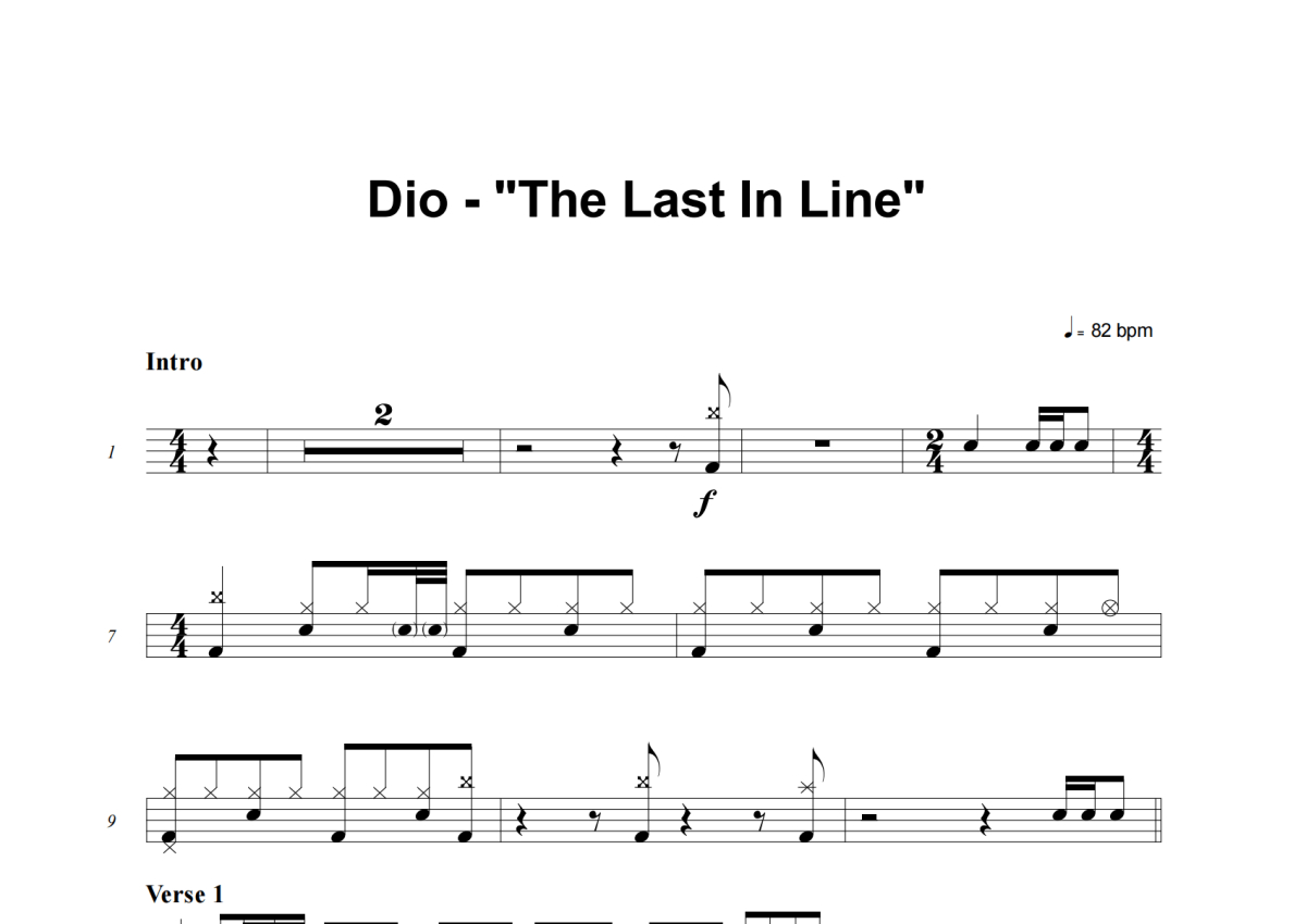 《The Last In Line》是Dio演唱的一首歌曲,这份架子鼓谱共有六张高清图谱,图谱由 @庄颜 编配上传,图谱使用五线谱编配,使用这份The Last In Line架子鼓谱,你将能够轻松地敲打出这首Dio的The Last In Line,快来尝试吧。