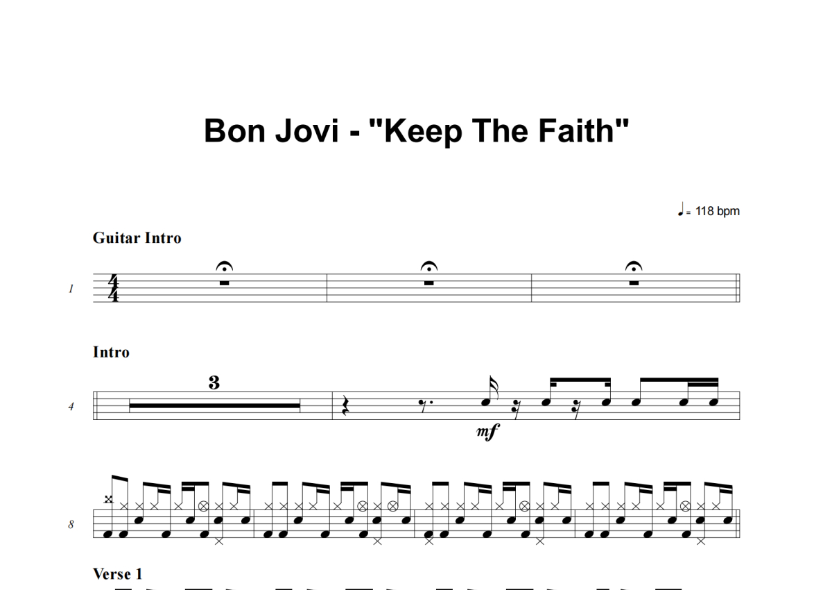Bon Jovi《Keep The Faith》架子鼓谱