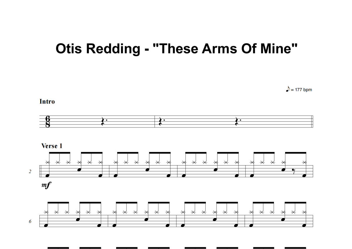 《These Arms Of Mine》是Otis Redding演唱的一首歌曲,这份架子鼓谱共有三张高清图谱,图谱由 @积极处世 编配上传,图谱使用五线谱编配,使用这份These Arms Of Mine架子鼓谱,你将能够轻松地敲打出这首Otis Redding的These Arms Of Mine,快来尝试吧。