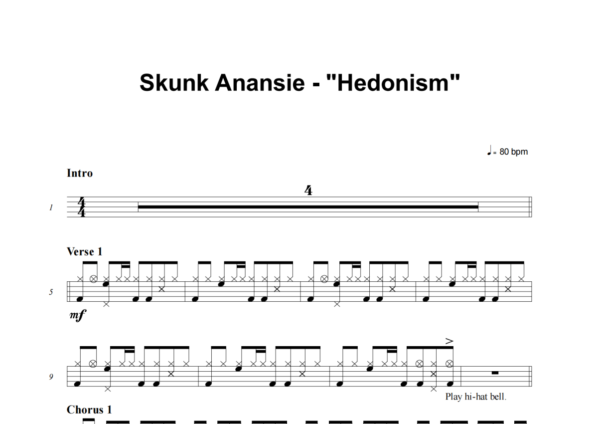 《Hedonism》是Skunk Anansie演唱的一首歌曲,这份架子鼓谱共有两张高清图谱,图谱由 @积极处世 编配上传,图谱使用五线谱编配,使用这份Hedonism架子鼓谱,你将能够轻松地敲打出这首Skunk Anansie的Hedonism,快来尝试吧。