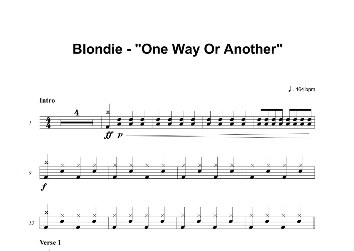 Blondie《One Way Or Another (Easy Version)》架子鼓谱