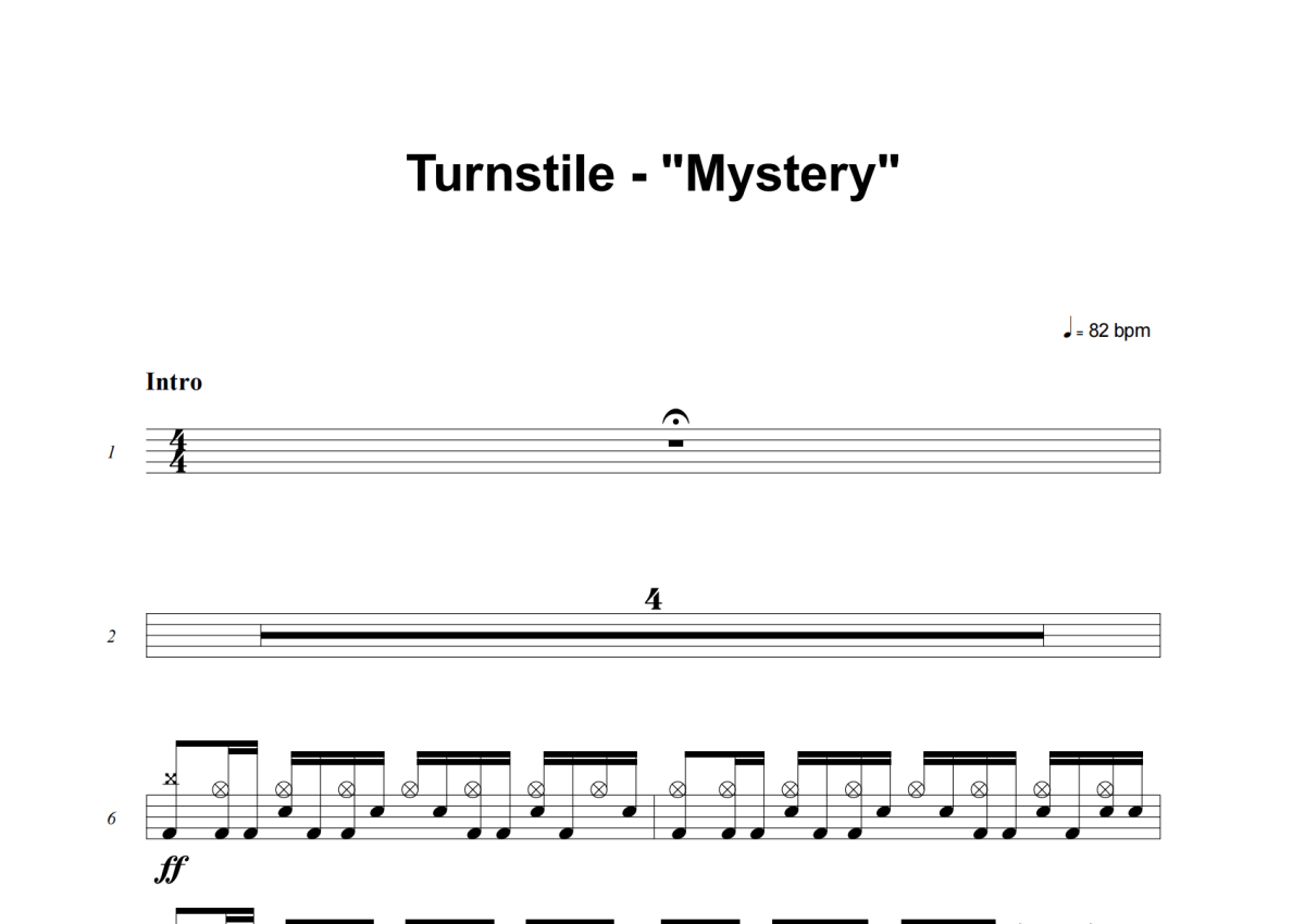 《Mystery》是Turnstile演唱的一首歌曲,这份架子鼓谱共有三张高清图谱,图谱由 @积极处世 编配上传,图谱使用五线谱编配,使用这份Mystery架子鼓谱,你将能够轻松地敲打出这首Turnstile的Mystery,快来尝试吧。