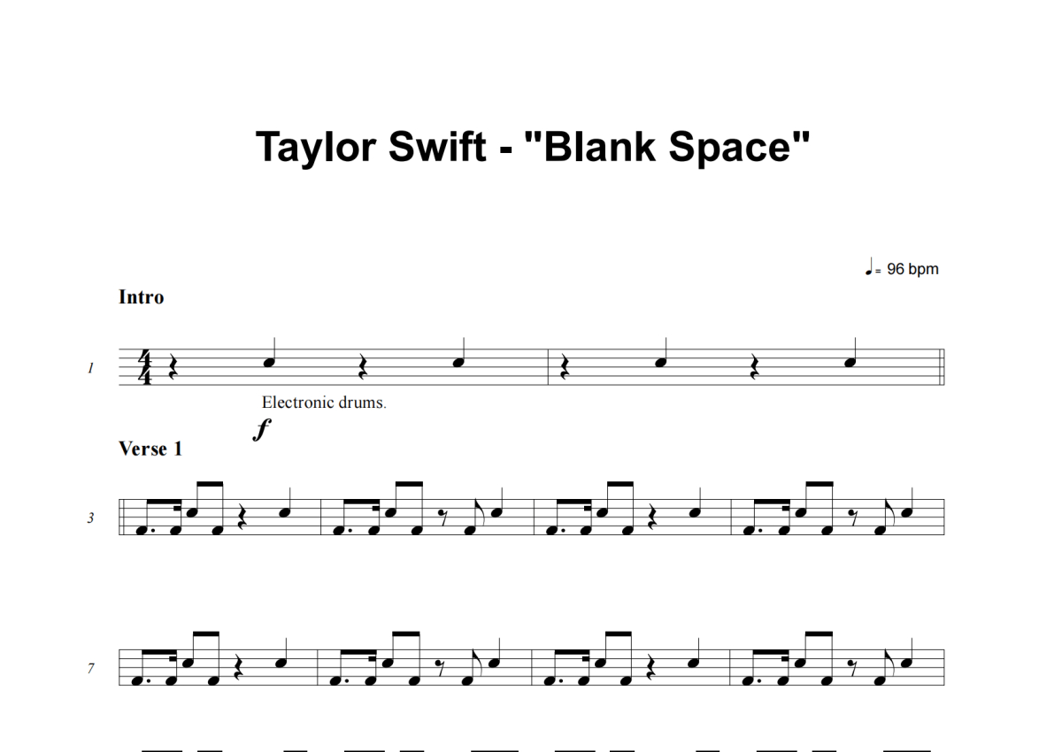 Taylor Swift《Blank Space》架子鼓谱