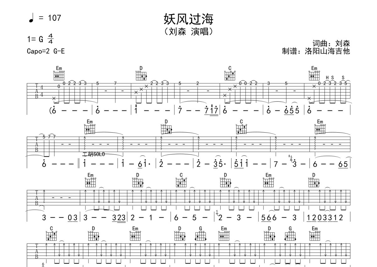 刘森《妖风过海》吉他谱 - G调弹唱六线谱