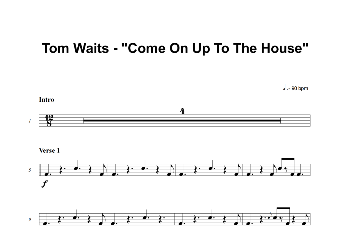 《Come On Up To The House》是Tom Waits演唱的一首歌曲,这份架子鼓谱共有三张高清图谱,图谱由 @积极处世 编配上传,图谱使用五线谱编配,使用这份Come On Up To The House架子鼓谱,你将能够轻松地敲打出这首Tom Waits的Come On Up To The House,快来尝试吧。