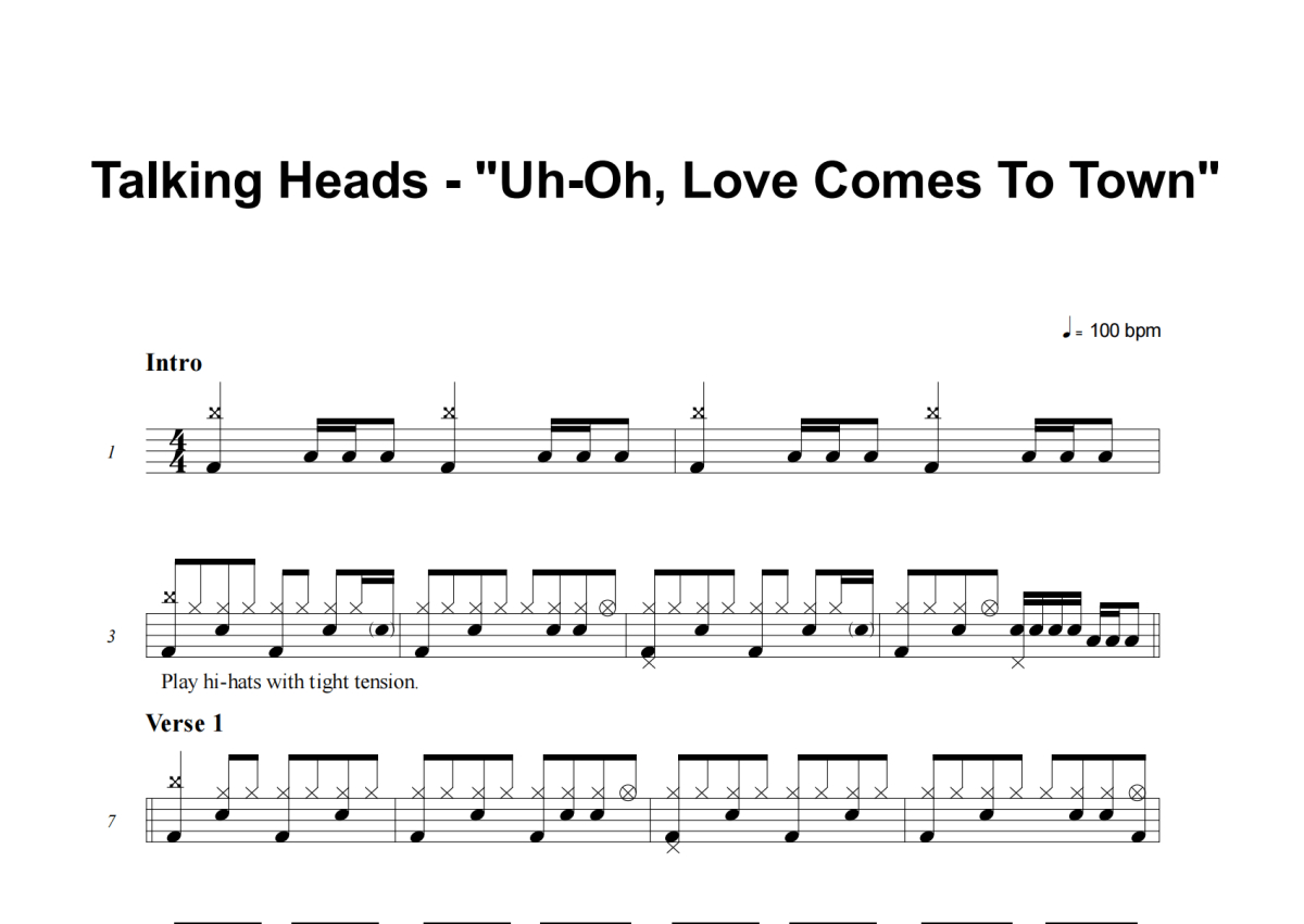 Talking Heads《Uh Oh, Love Comes To Town》架子鼓谱