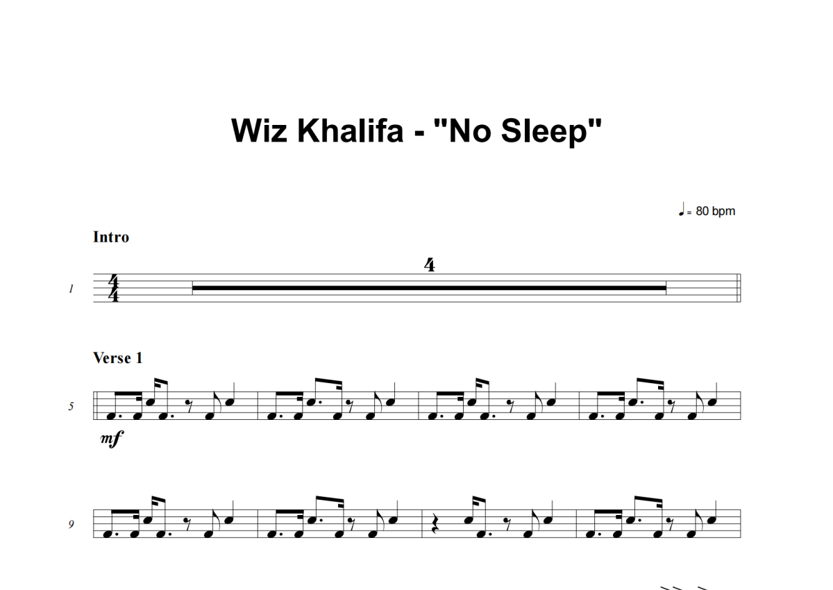 Wiz Khalifa《No Sleep》架子鼓谱
