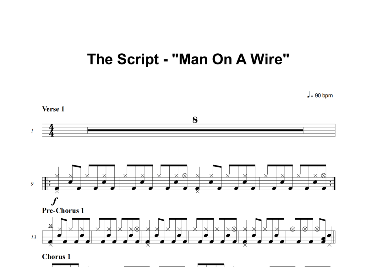 《Man On A Wire》是The Script演唱的一首歌曲,这份架子鼓谱共有三张高清图谱,图谱由 @积极处世 编配上传,图谱使用五线谱编配,使用这份Man On A Wire架子鼓谱,你将能够轻松地敲打出这首The Script的Man On A Wire,快来尝试吧。