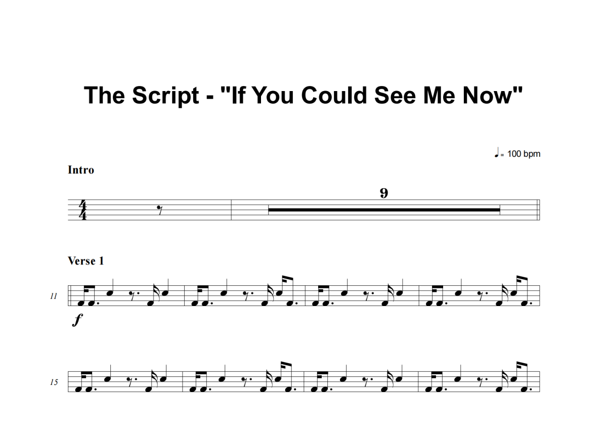 The Script《If You Could See Me Now》架子鼓谱