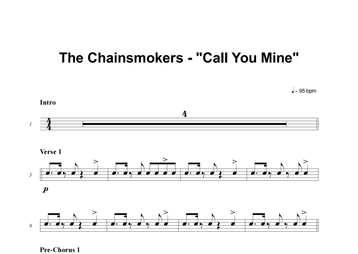 The Chainsmokers《Call You Mine》架子鼓谱