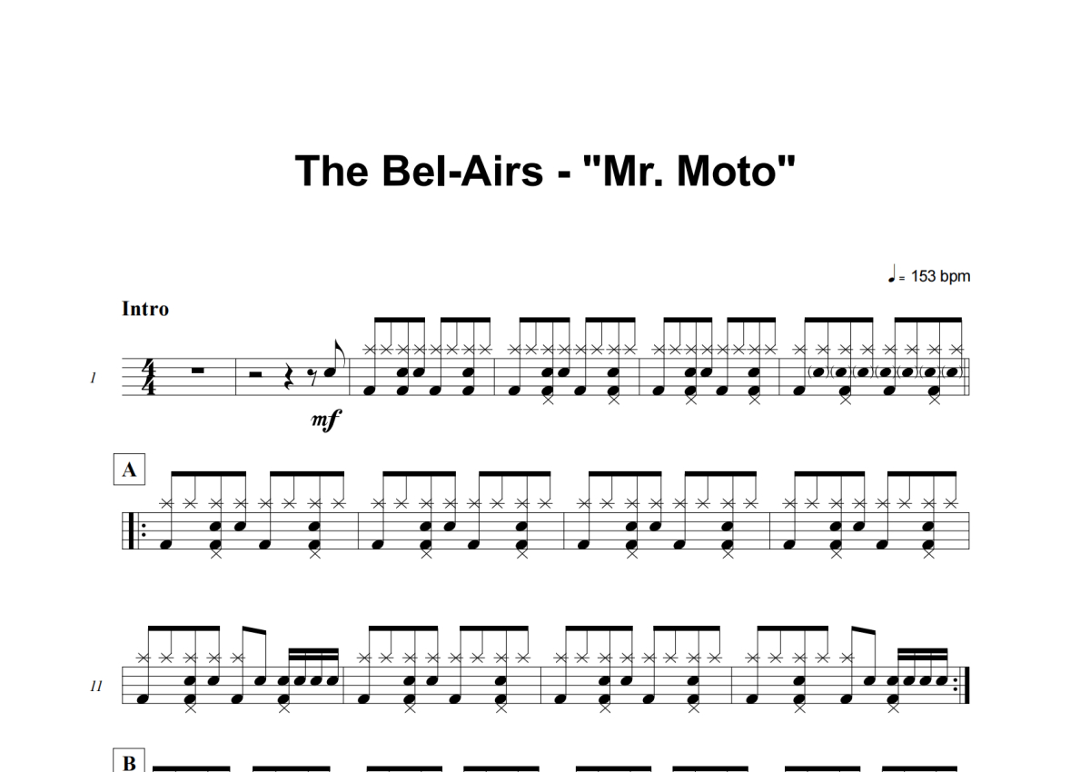 The Belairs《Mr. Moto》架子鼓谱