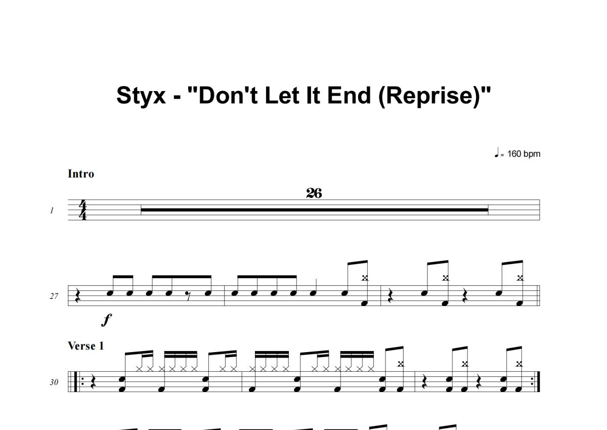 Styx《Don't Let It End (Reprise)》架子鼓谱