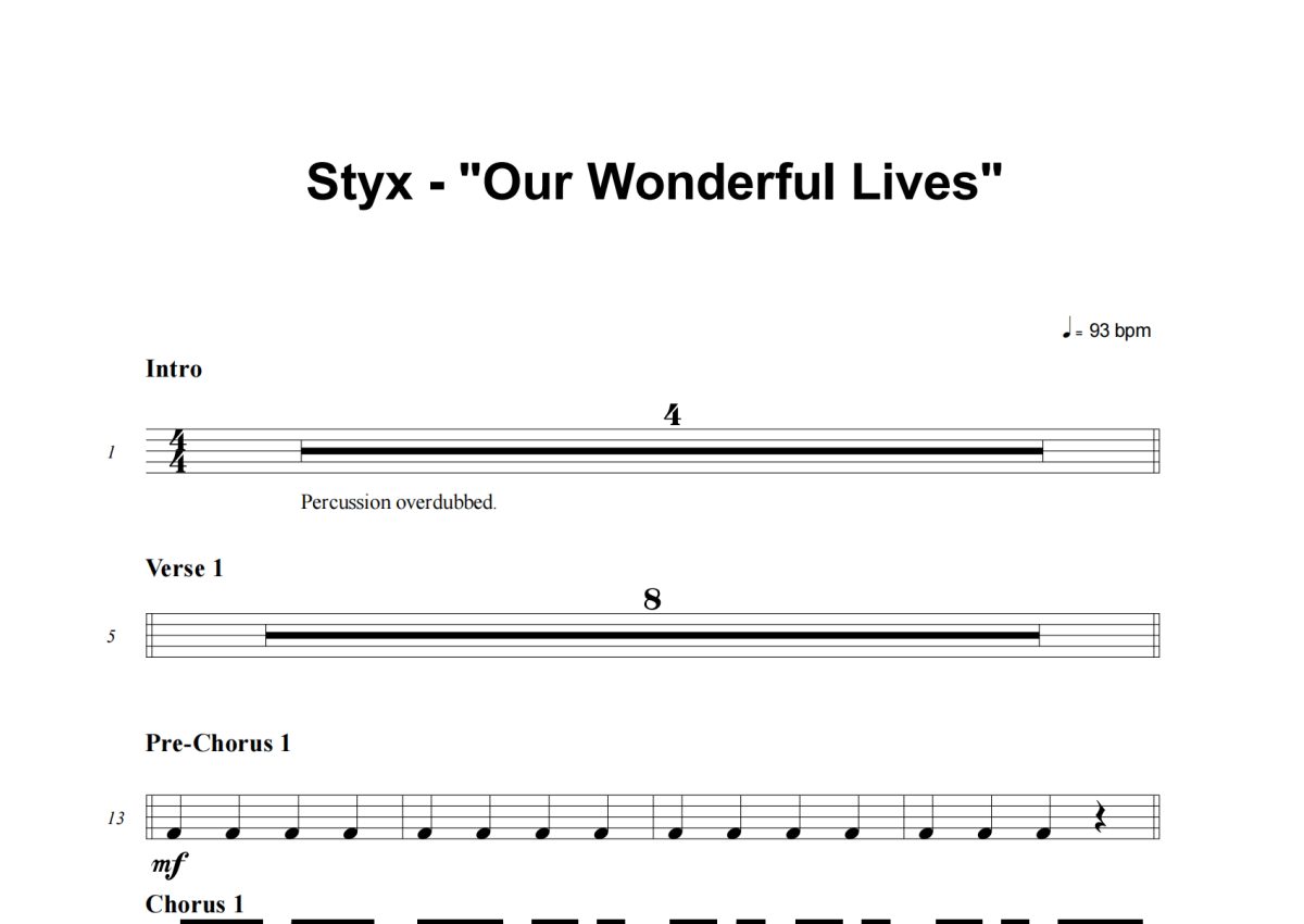 Styx《Our Wonderful Lives》架子鼓谱