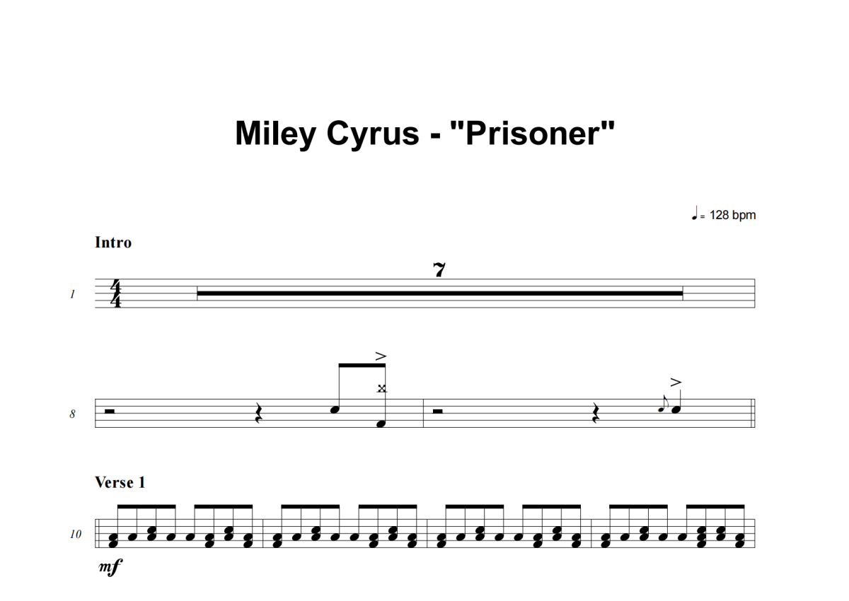 《Prisoner》是Miley Cyrus演唱的一首歌曲,这份架子鼓谱共有三张高清图谱,图谱由 @积极处世 编配上传,图谱使用五线谱编配,使用这份Prisoner架子鼓谱,你将能够轻松地敲打出这首Miley Cyrus的Prisoner,快来尝试吧。