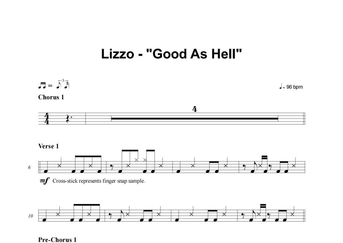 《Good As Hell》是Lizzo演唱的一首歌曲,这份架子鼓谱共有两张高清图谱,图谱由 @积极处世 编配上传,图谱使用五线谱编配,使用这份Good As Hell架子鼓谱,你将能够轻松地敲打出这首Lizzo的Good As Hell,快来尝试吧。