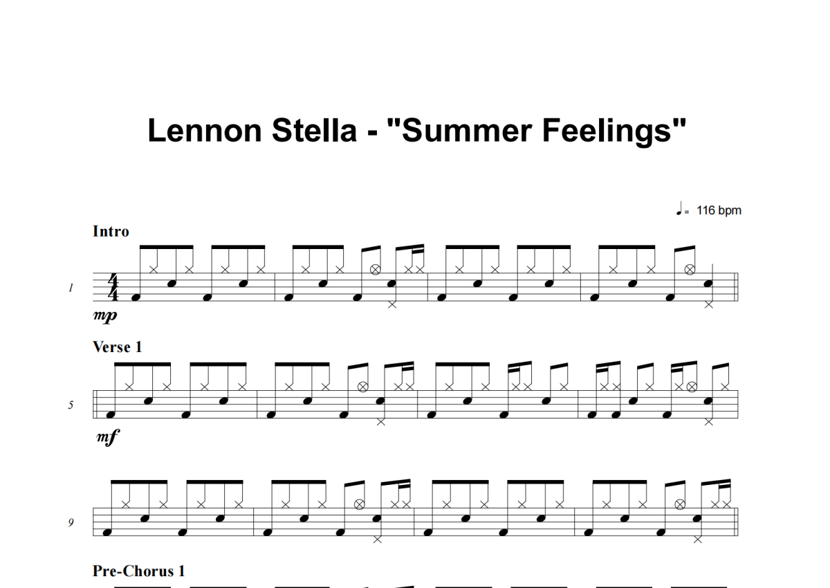 Summer Feelings架子鼓谱 - Lennon Stella演唱