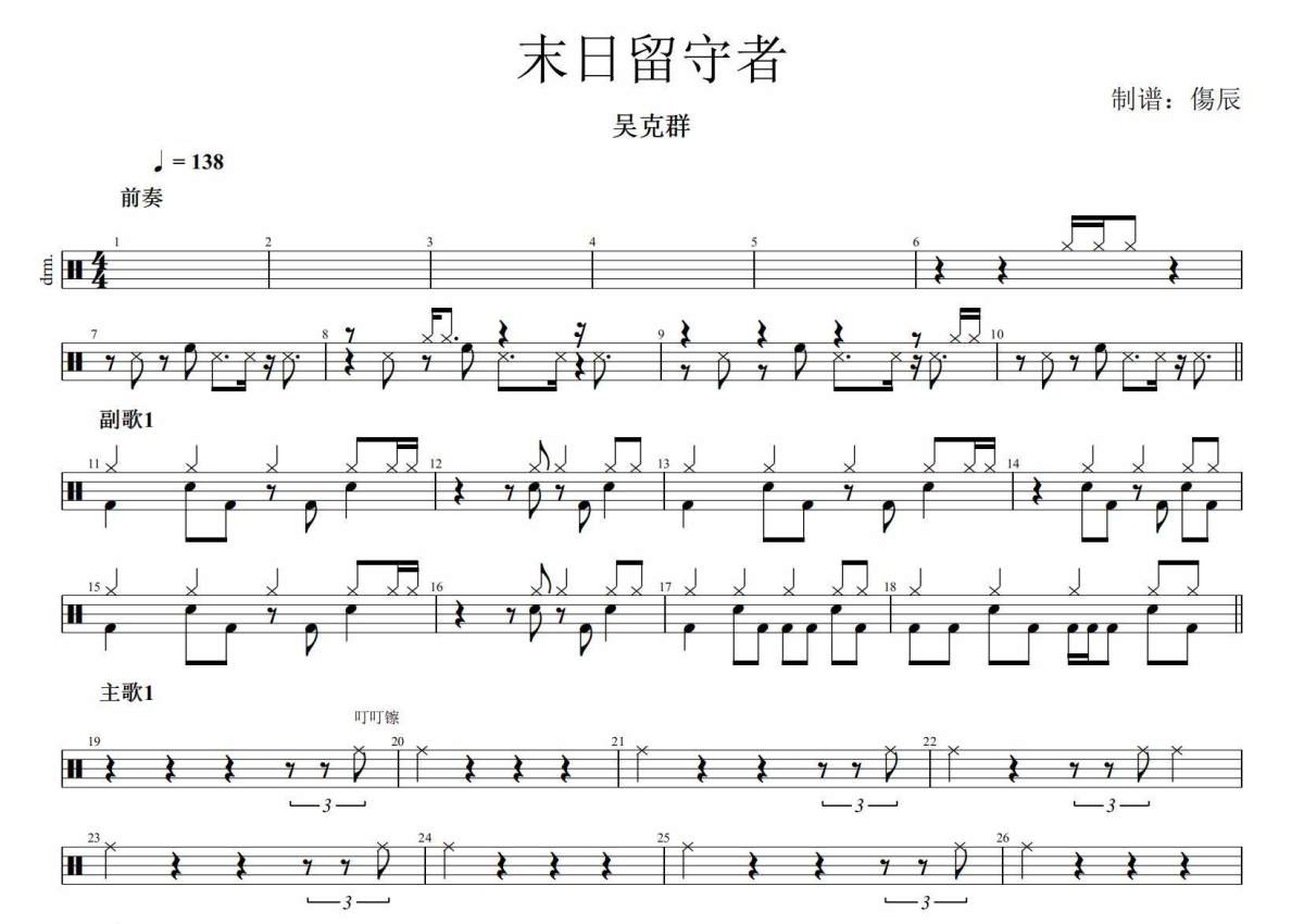 吴克群《末日留守者》架子鼓谱