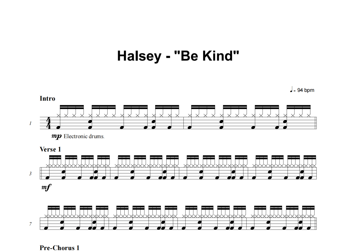 Halsey《Be Kind》架子鼓谱