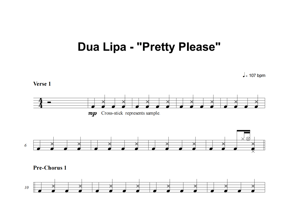 Dua Lipa《Pretty Please》架子鼓谱