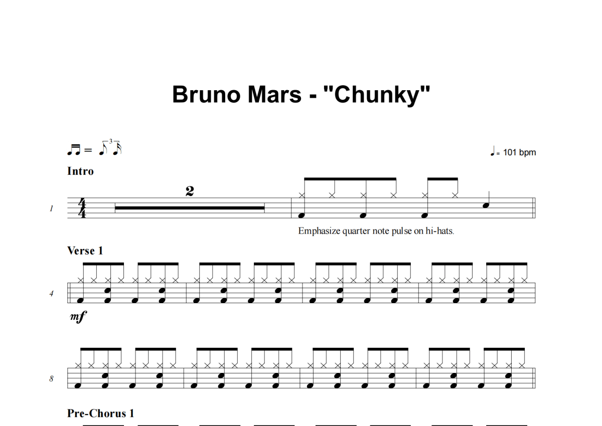 Bruno Mars《Chunky》架子鼓谱
