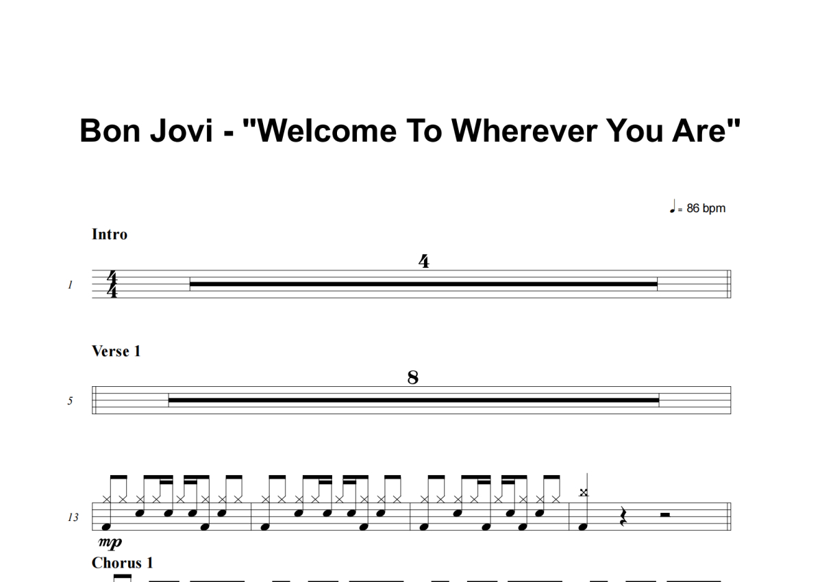 Bon Jovi《Welcome To Wherever You Are》架子鼓谱