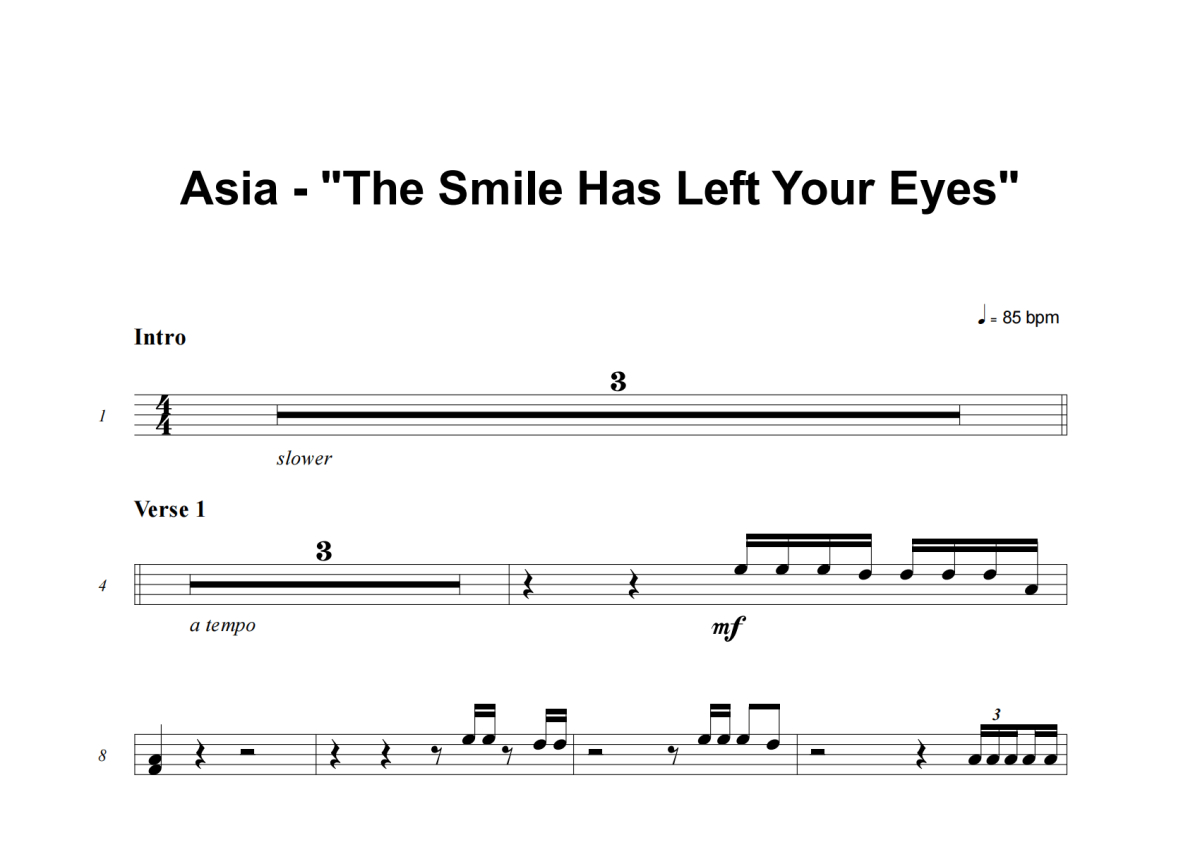 Asia《The Smile Has Left Your Eyes》架子鼓谱