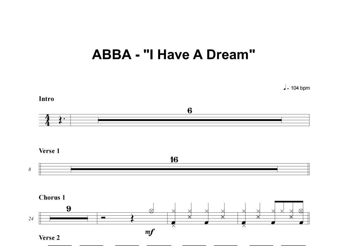 ABBA《I Have A Dream》架子鼓谱