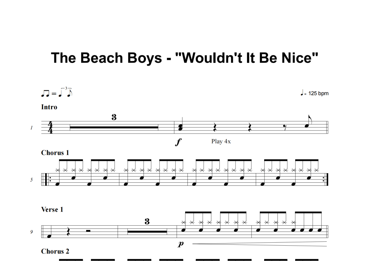 The Beach Boys《Wouldn't It Be Nice》架子鼓谱
