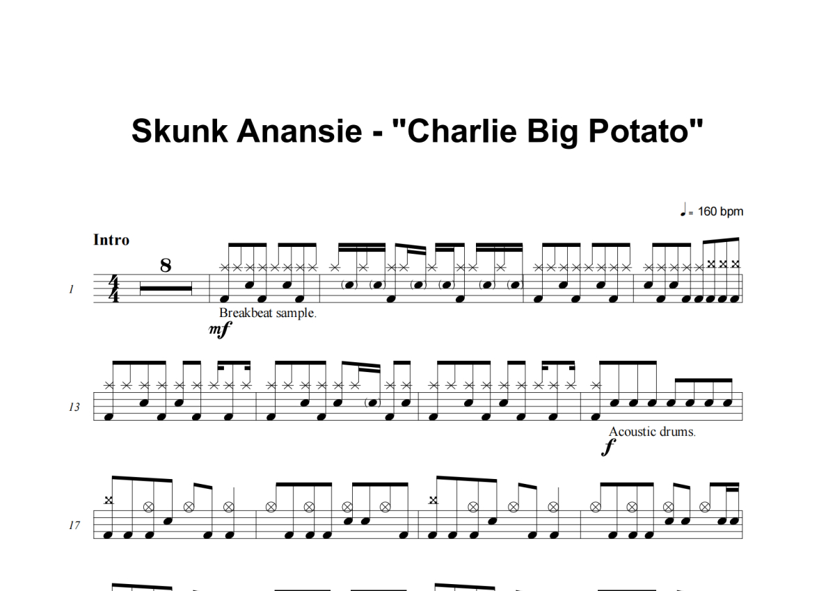 Skunk Anansie《Charlie Big Potato》架子鼓谱