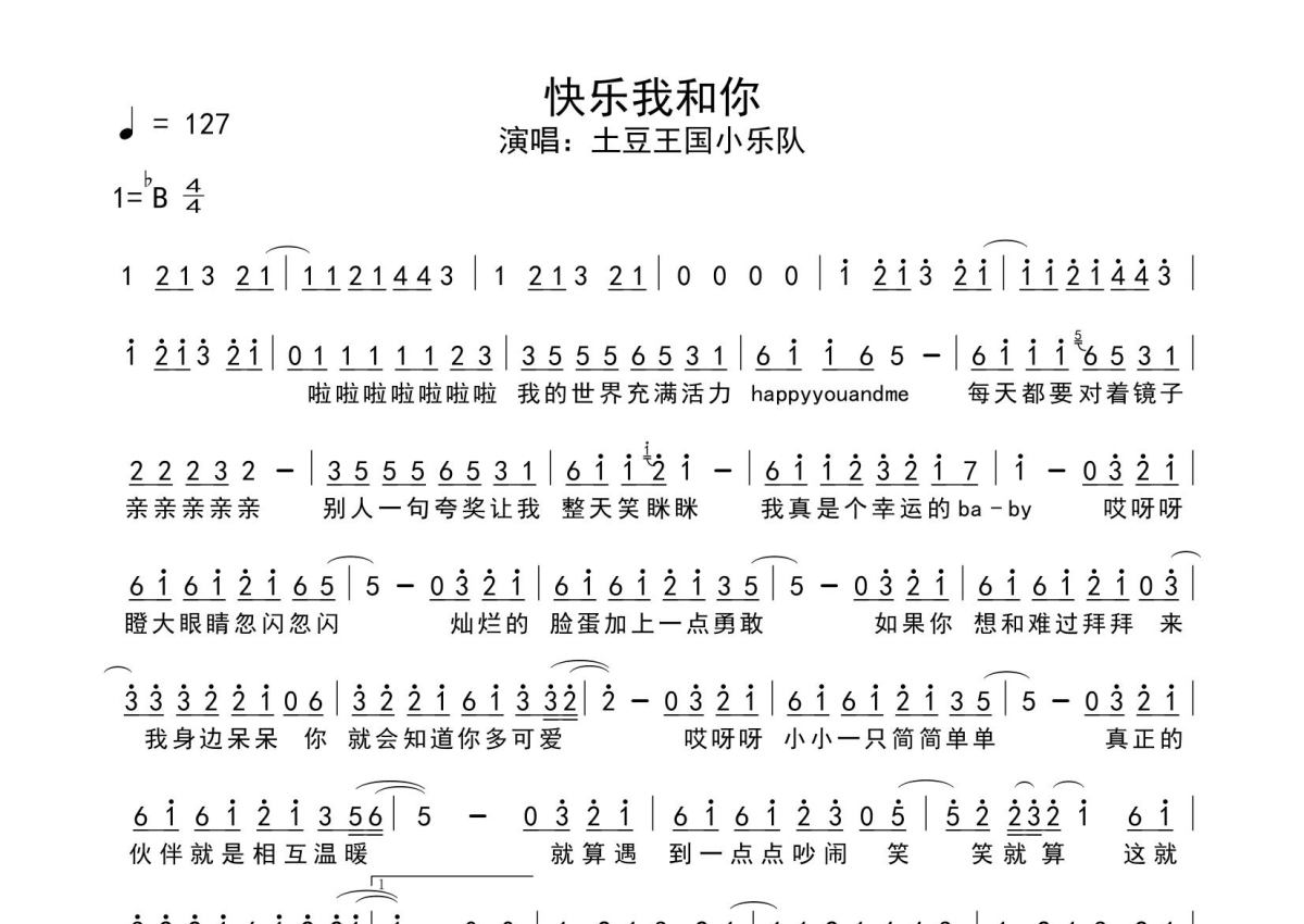 快乐我和你简谱 - 土豆王国小乐队演唱