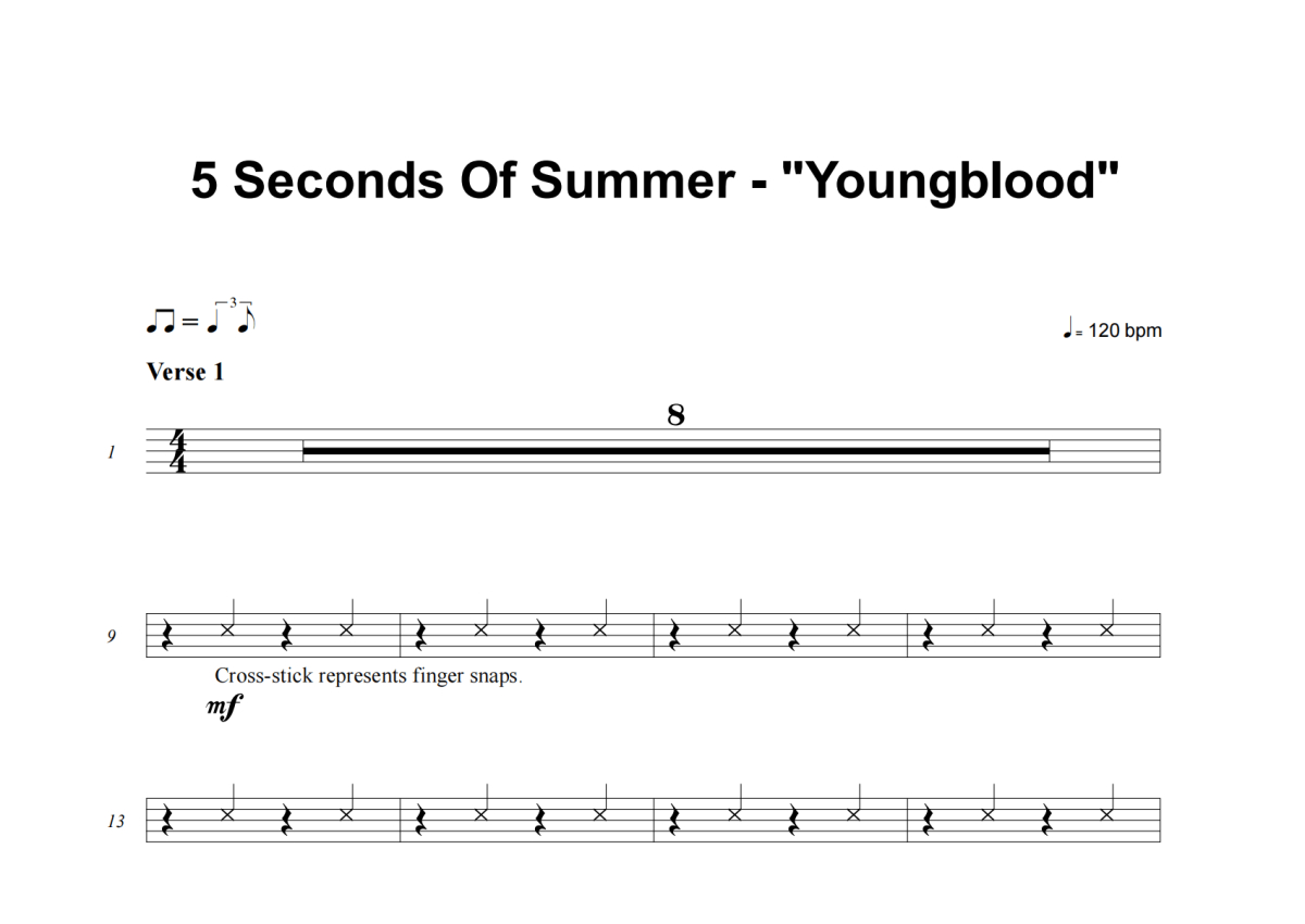 5 Seconds Of Summer《Youngblood》架子鼓谱