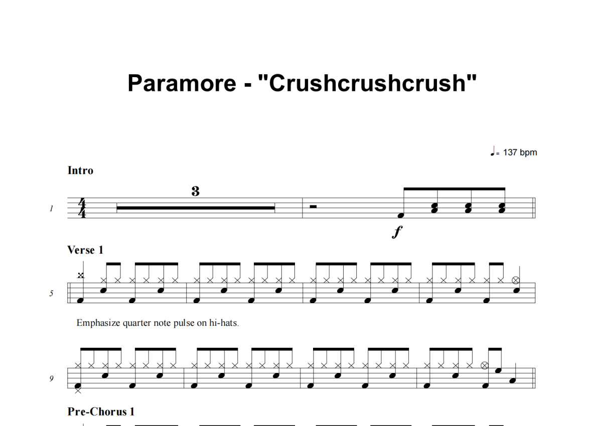 Paramore《Crushcrushcrush》架子鼓谱