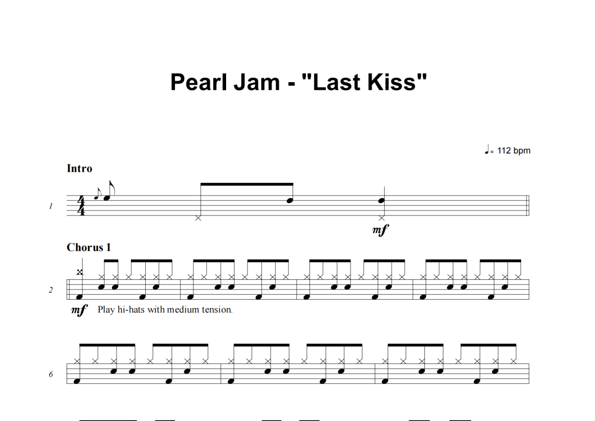 Pearl Jam《Last Kiss》架子鼓谱