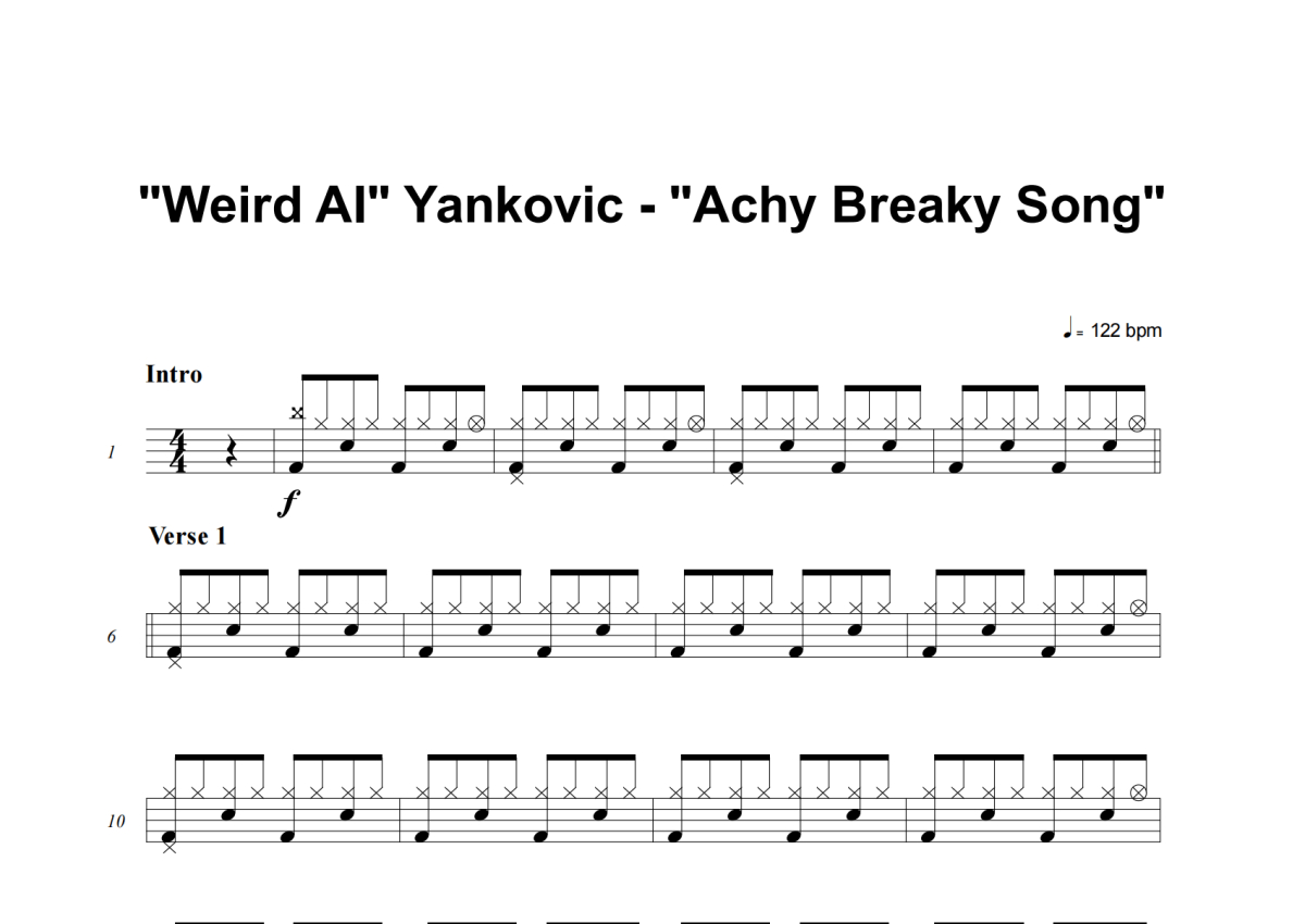 Weird Al Yankovic《Achy Breaky Song》架子鼓谱