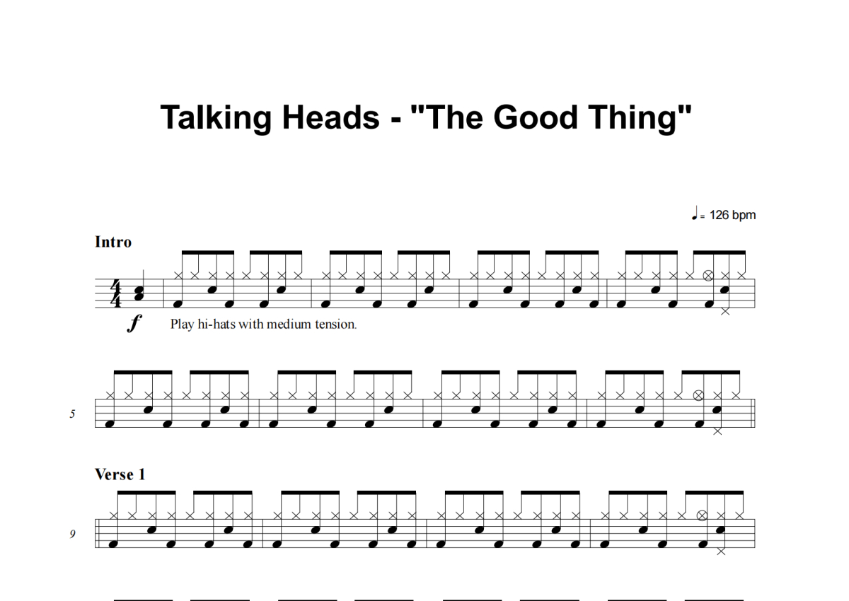 《The Good Thing》是Talking Heads演唱的一首歌曲,这份架子鼓谱共有三张高清图谱,图谱由 @积极处世 编配上传,图谱使用五线谱编配,使用这份The Good Thing架子鼓谱,你将能够轻松地敲打出这首Talking Heads的The Good Thing,快来尝试吧。