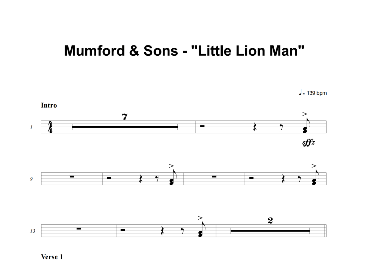Mumford & Sons《Little Lion Man》架子鼓谱