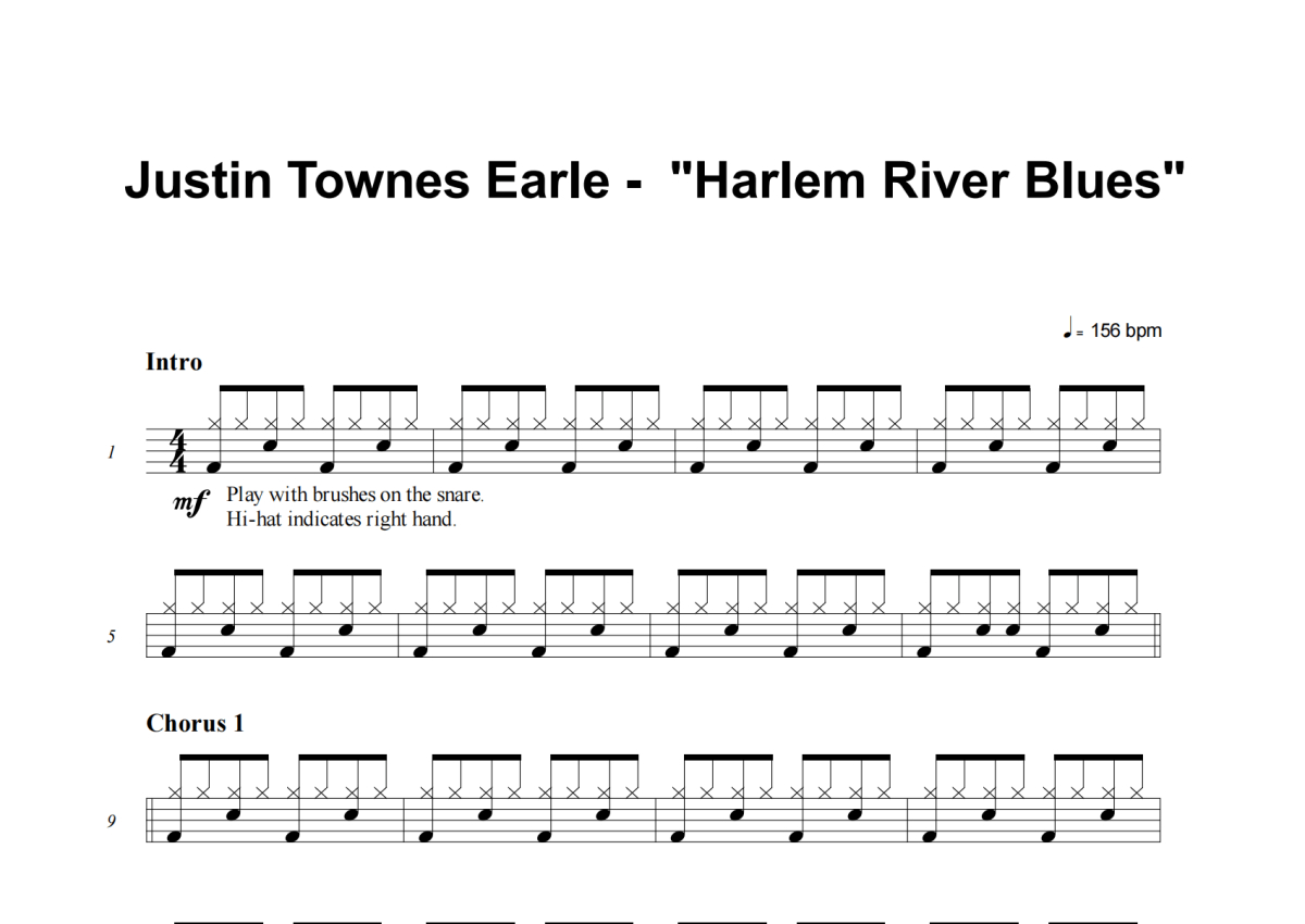 Justin Townes Earle《Harlem River Blues》架子鼓谱