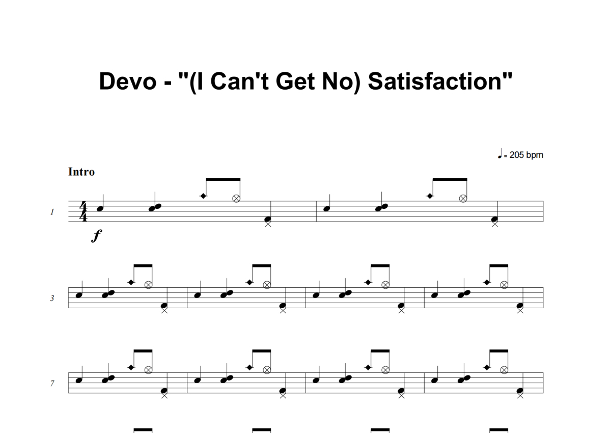 Devo《(I Can't Get No) Satisfaction》架子鼓谱