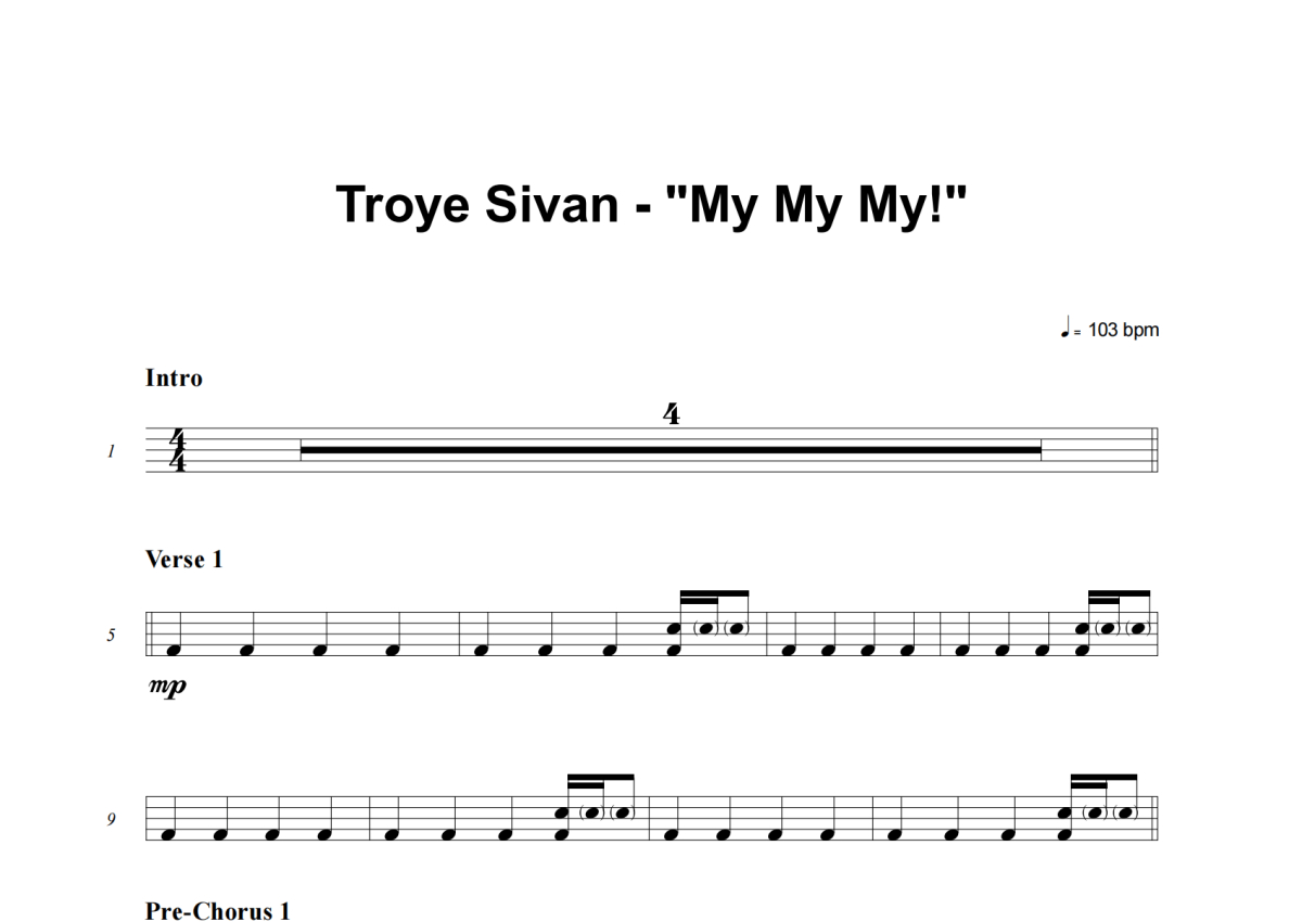 Troye Sivan《My My My!》架子鼓谱