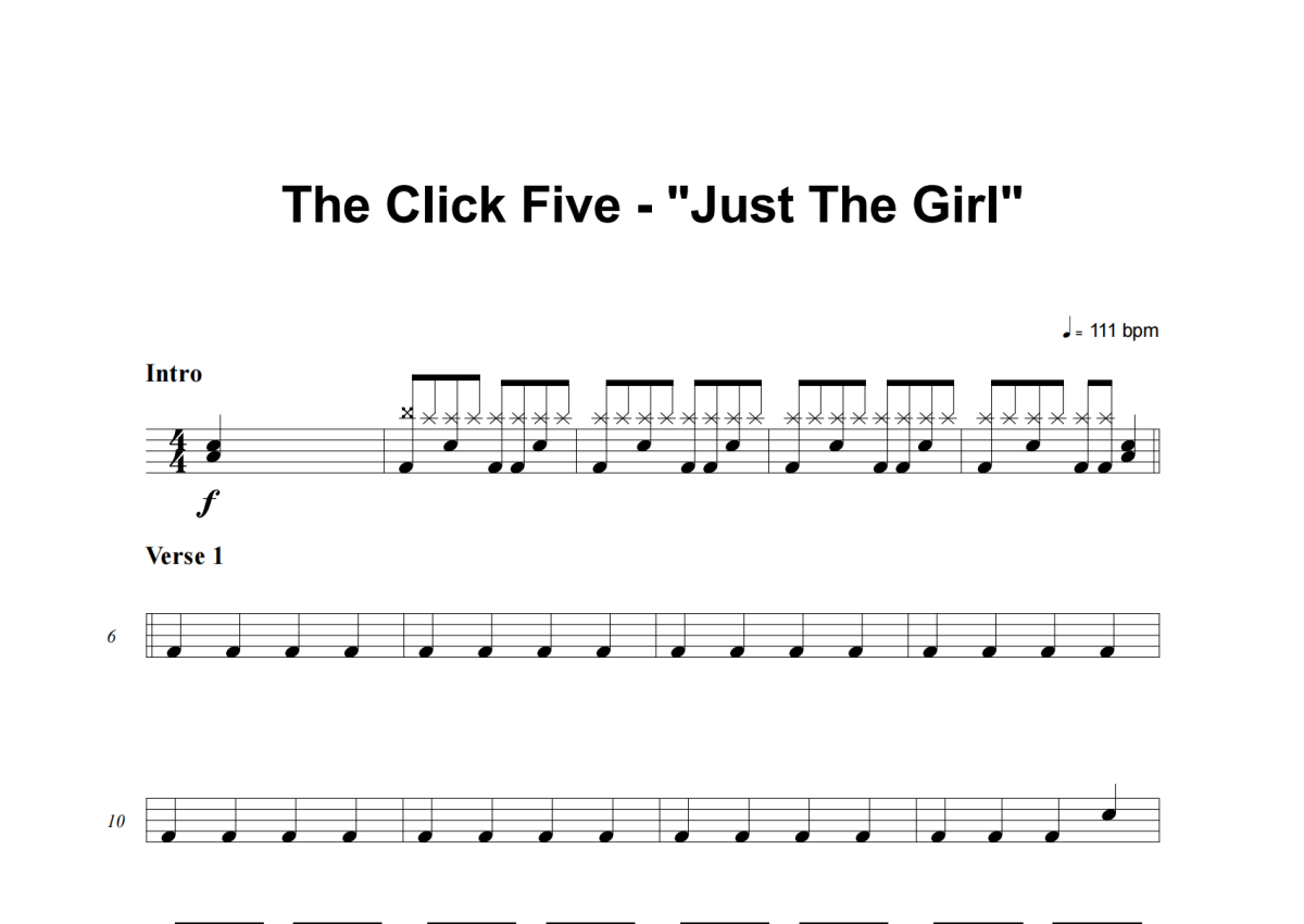 《Just The Girl》是The Click Five演唱的一首歌曲,这份架子鼓谱共有三张高清图谱,图谱由 @积极处世 编配上传,图谱使用五线谱编配,使用这份Just The Girl架子鼓谱,你将能够轻松地敲打出这首The Click Five的Just The Girl,快来尝试吧。
