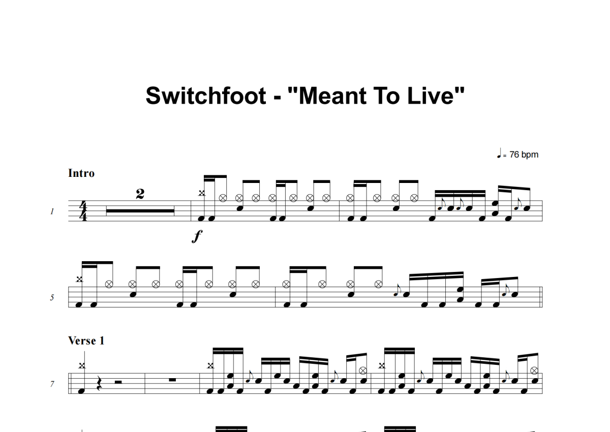 Switchfoot《Meant To Live》架子鼓谱
