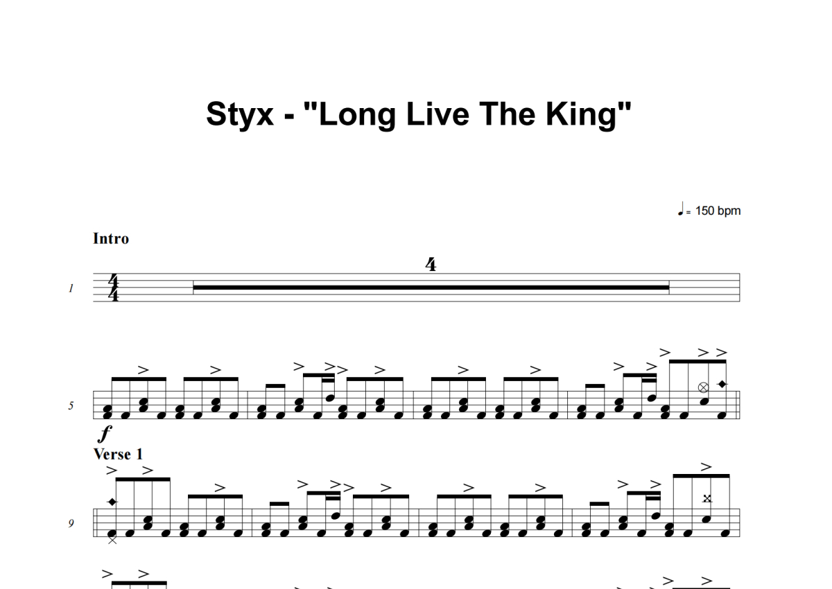 Styx《Long Live The King》架子鼓谱