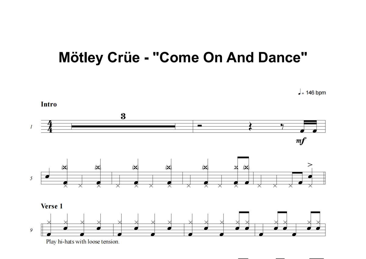 《Come On And Dance》是Motley Crue演唱的一首歌曲,这份架子鼓谱共有四张高清图谱,图谱由 @积极处世 编配上传,图谱使用五线谱编配,使用这份Come On And Dance架子鼓谱,你将能够轻松地敲打出这首Motley Crue的Come On And Dance,快来尝试吧。