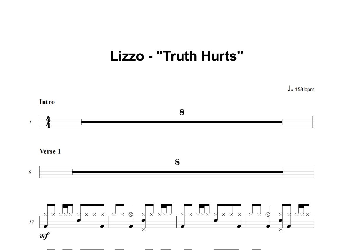 Lizzo《Truth Hurts》架子鼓谱