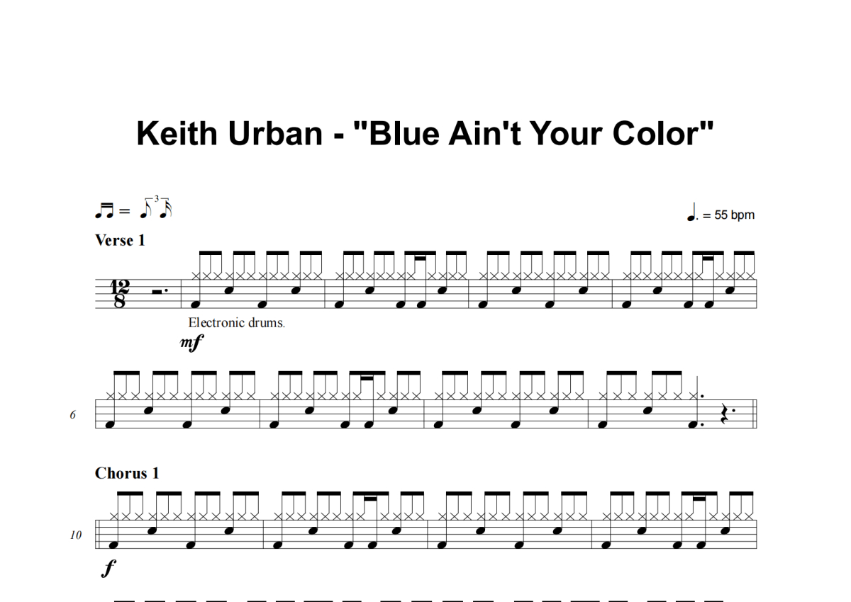 Keith Urban《Blue Ain't Your Color》架子鼓谱